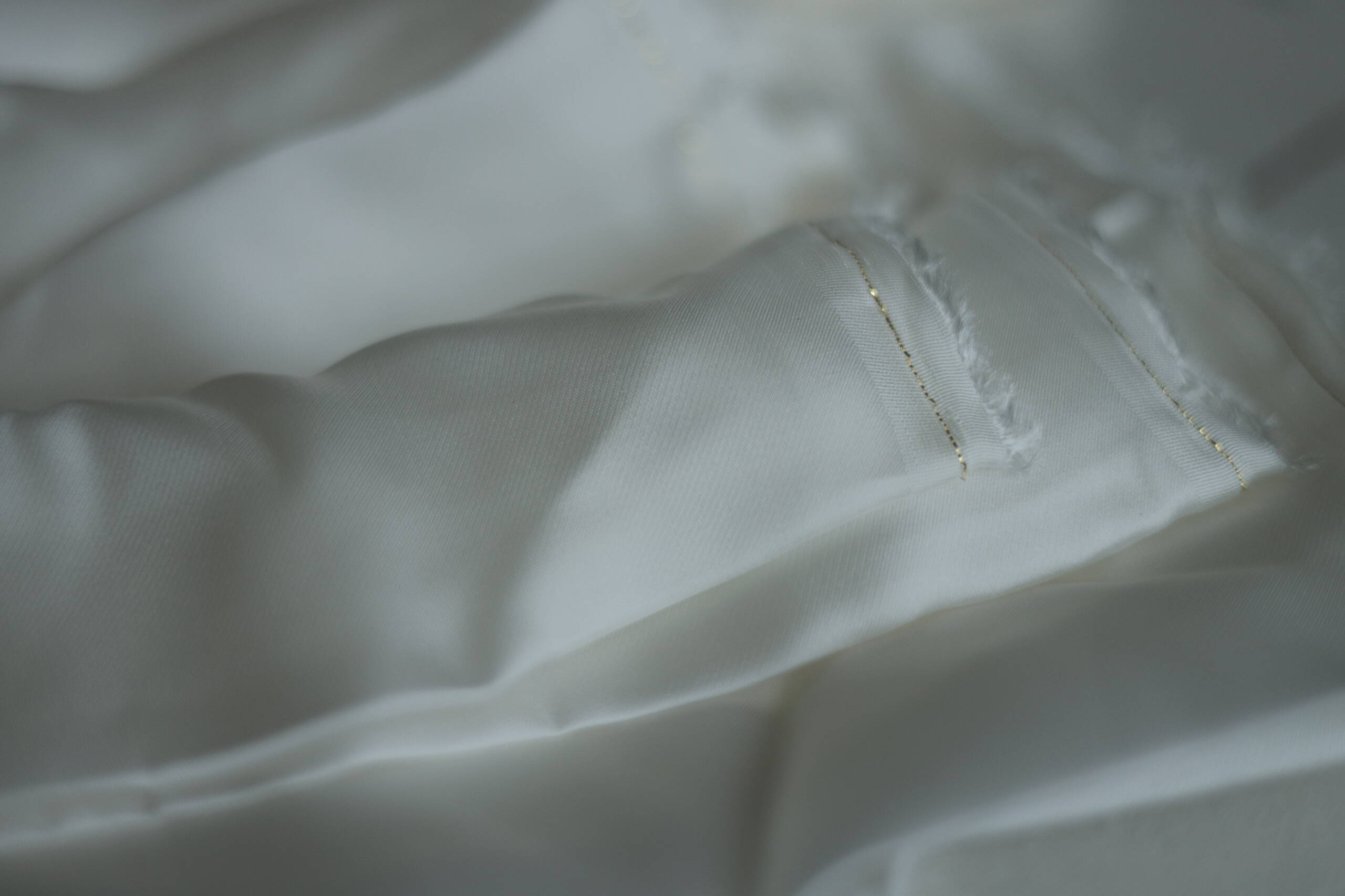 Viscose organza satin fabric is a sheer, crisp textile made from a cellulose-based fiber derived from high quality wood pulp or bamboo (a Men made natural cellulose fiber), combining organza’s lightweight plain weave structure with a satin finish for subtle luster and stiffness.